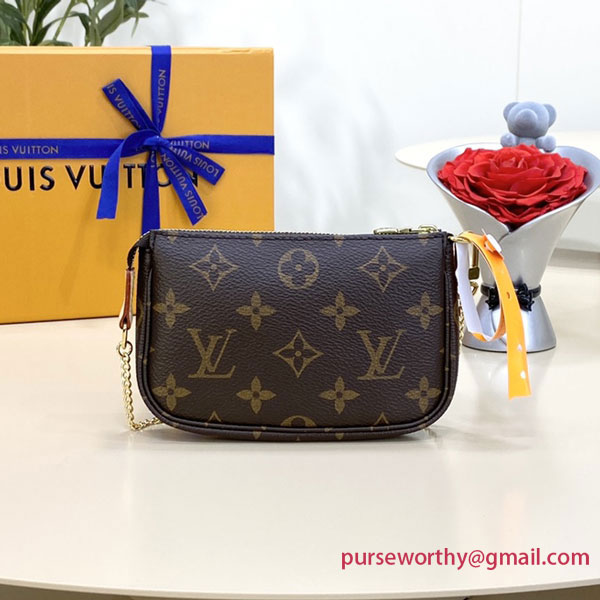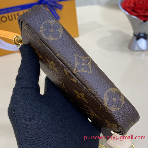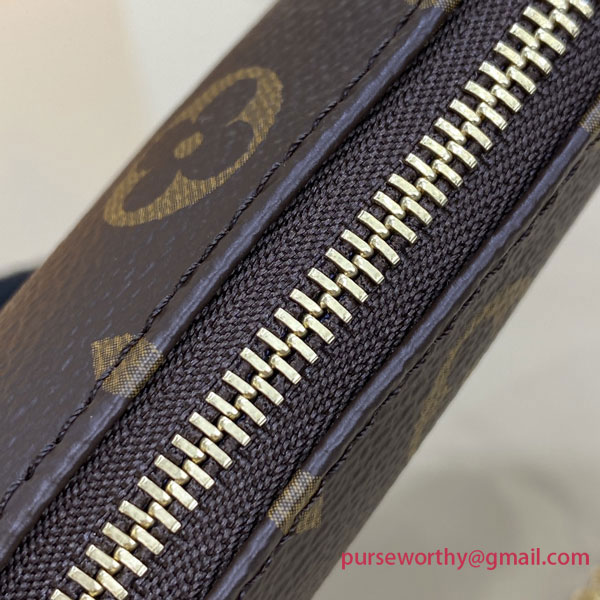 The Mini Pochette Accessoires in Monogram canvas is a stylish way to carry essentials. Its secure zip protects a spacious compartment, while the chain and hook enable it to be attached to a larger bag, as well as carried in the hand. The rounded shape and supple canvas give this pouch a particularly pleasant feel.