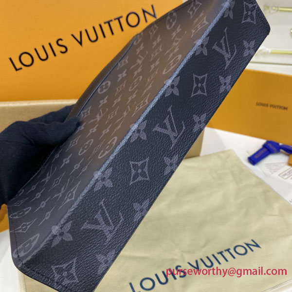 Crafted in our new iconic black and grey Monogram Eclipse canvas, this new MM size for the Pochette Voyage is resolutely masculine and is perfect to carry your essentials inside a travel bag.