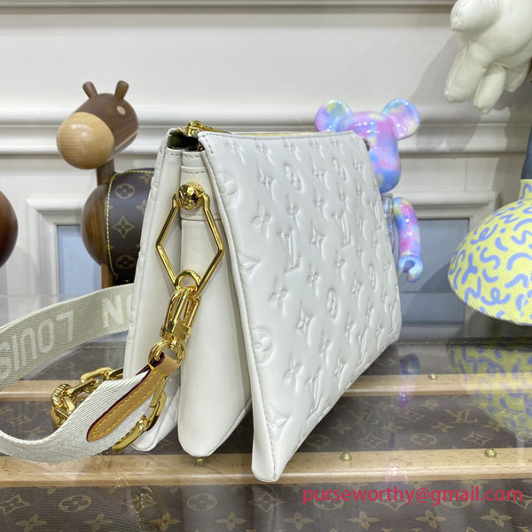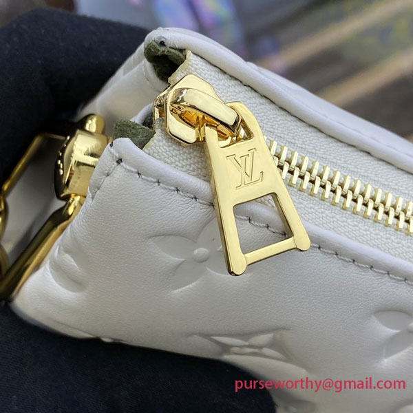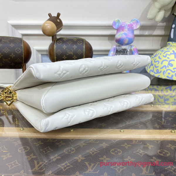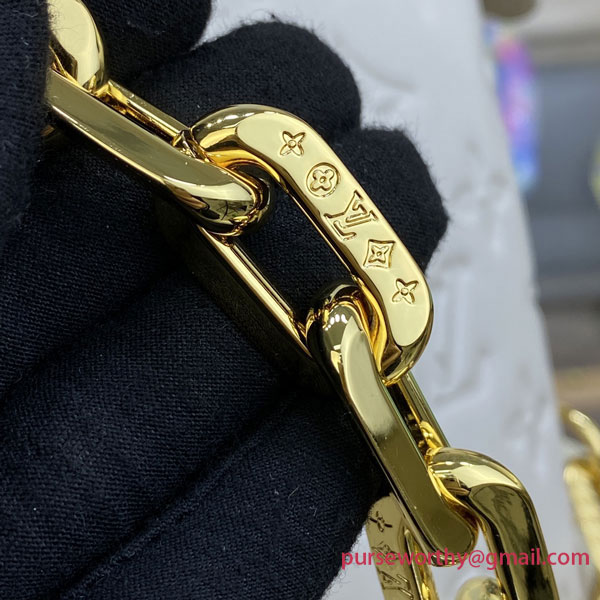 One of the stars of the Spring-Summer 2021 show, the Coussin PM handbag is made from Monogram-embossed puffy lambskin. It can be worn cross-body with the strap, as a chain baguette, or comfortably carried under the arm. The pillow-like Coussin bag brings style to the most simple look, giving it an effortless fashion-forward allure.