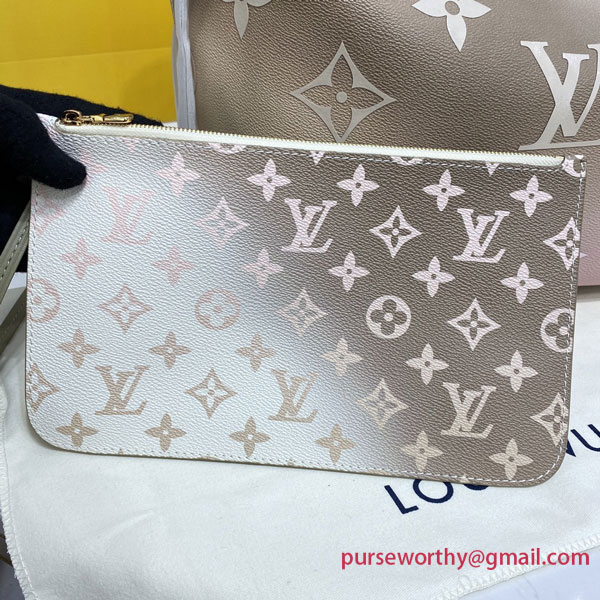 For Spring 2022, the Neverfull MM tote in Monogram canvas sports a colorful gradient that will enliven every warm-weather ensemble. The bag’s roomy design makes it an ideal companion for busy lifestyles, worn on the shoulder or carried over the arm. A removable printed pouch does double duty as an extra pocket or casual little clutch.