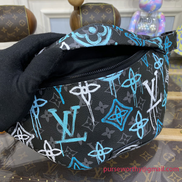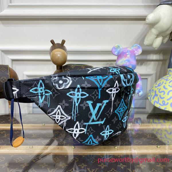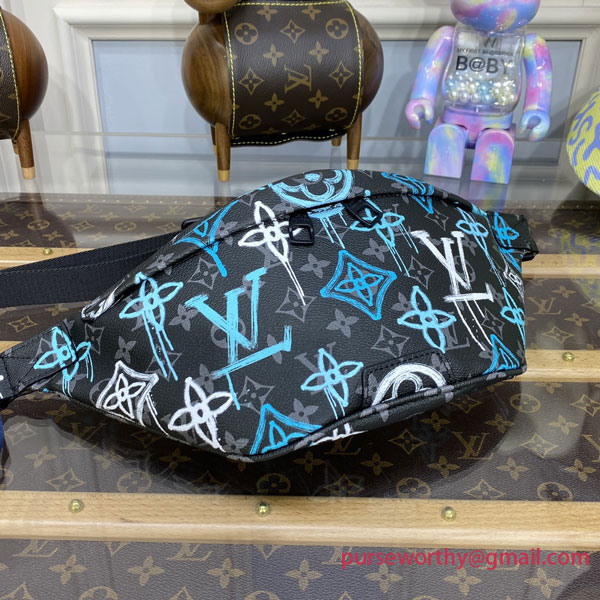 This Discovery Bumbag is made from Monogram Eclipse coated canvas, twisted with a graffiti spray-paint effect that brings a streetwear feel. Easy to wear, it has an adjustable belt which adapts to waist, shoulder and cross-body carry. Front and back zipped pockets give quick access to phones, cards and other small essentials.