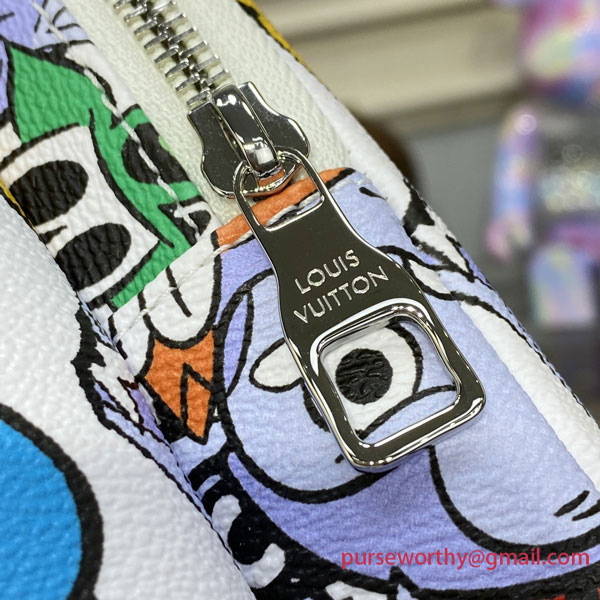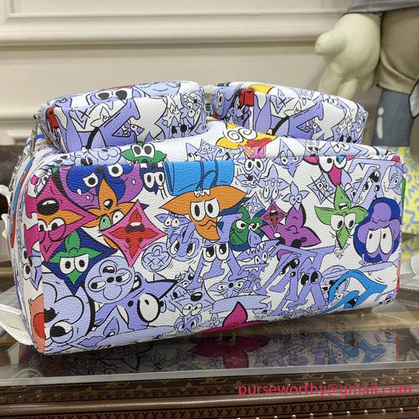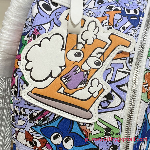 This chunky Multipocket Backpack, with its two front pockets, is made from Monogram Comics coated canvas, featuring over a hundred cartoon-character versions of the iconic Monogram Flowers and LV initials. The characters’ range of emotions, from joy to sadness, deliver a message of inclusivity and positivity in a fun way.