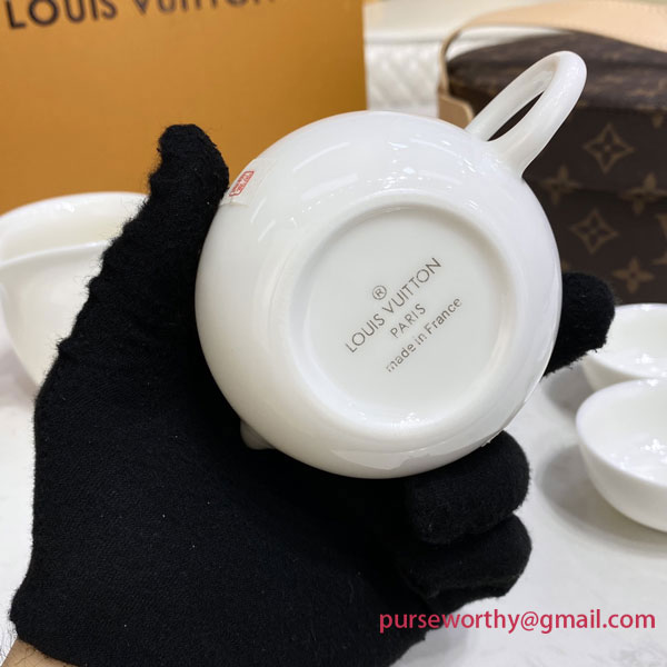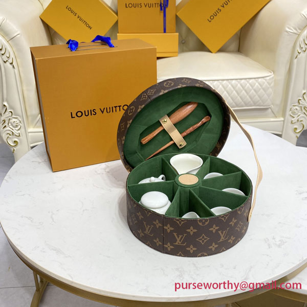 Designed compartment to host each piece of the tea degustation: tea pitcher, teapot, tea filter, 4 tea cups, wooden tea needle & teaspoon
