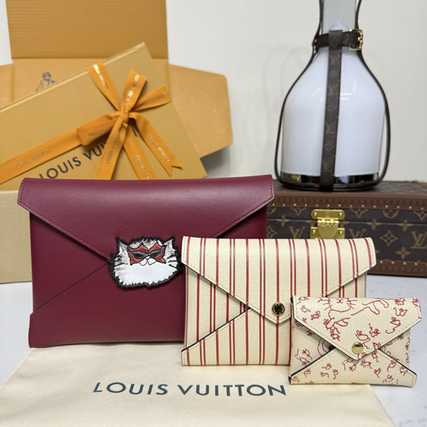 Part of the exclusive LV Travels With Grace Coddington collectsion, this Kirigami Pochette is organized into three designs that nest together, from small to large. Showcasing Coddington’s love of cats, it features a playful printed lining and a feline-shaped snap button – all hand-drawn by American Vogue's former Creative Director at Large. The rich Plum palette and gold-toned hardware lend a sophisticated finish.