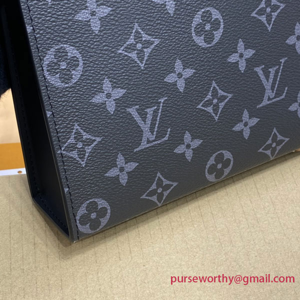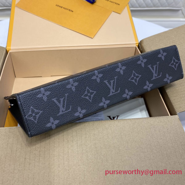 Crafted in our new iconic black and grey Monogram Eclipse canvas, this new MM size for the Pochette Voyage is resolutely masculine and is perfect to carry your essentials inside a travel bag.