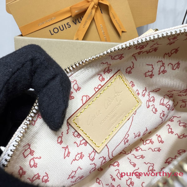 This edition of the iconic Speedy 20 Bandoulière is crafted from Meowgram canvas, designed in collaboration with American Vogue’s former Creative Director at Large, Grace Coddington. Part of her exclusive LV Travels With collectsion, it features an adorable cat-shaped charm and is topped with contrasting leather handles. Sleek gold-toned hardware, including a signature padlock, lends a sophisticated finish.