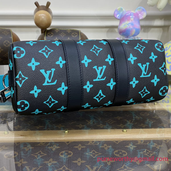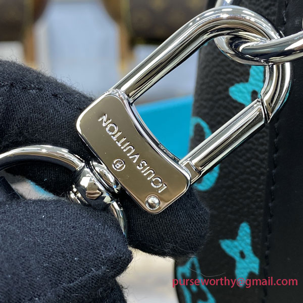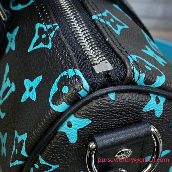 The Keepall 25 city bag is made from Monogram Playground canvas with trim, top handles, and a detachable shoulder strap in cowhide leather. The Monogram Blossoms and LVs are printed in an almost florescent tone that makes the pattern pop. This ultra-practical contemporary bag features a zipped closure to keep belongings secure but easily accessible.