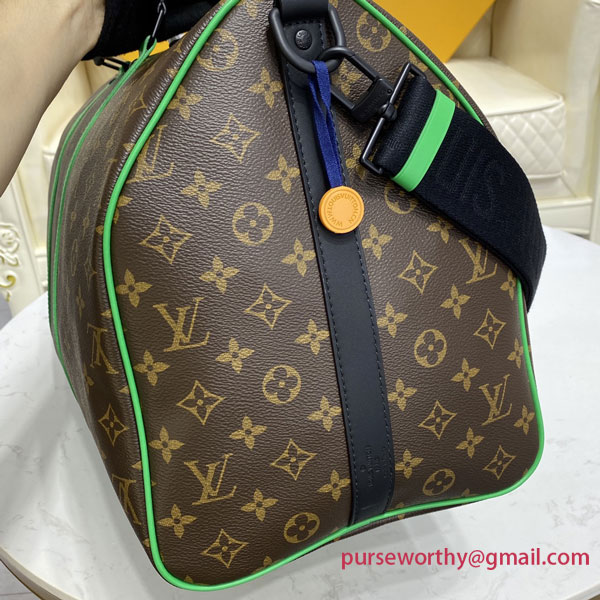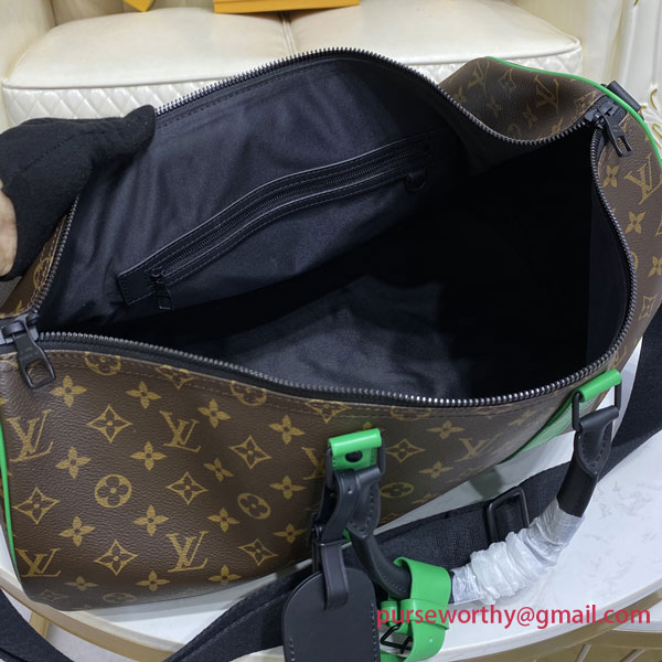 The classic Keepall now comes in Monogram Macassar canvas combined with cowhide dyed a vivid shade of green, one of designer Virgil Abloh’s emblematic colors. And it offers all the famous Keepall details, like the double reinforcement strips and the buckled-on leather name tag. An ultra-functional travel bag and a striking new take on the Monogram look.
