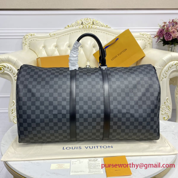 This urban travel bag in a revisited classic, Damier Graphite canvas, is not only stylish but also resistant and light. Hand held with a removable shoulder strap makes it extremely practical to use.