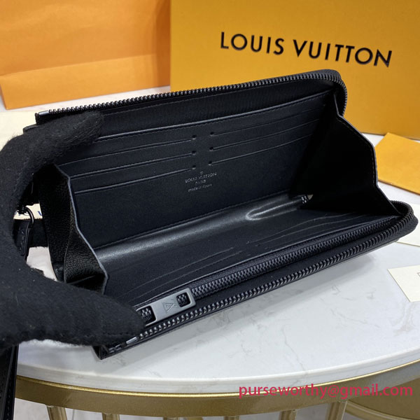 The new LV Aerogram Long Wallet reinvents a traditional men’s accessory with a contemporary minimalist design. Styled in fine-grained black calf leather, as soft as an old-fashioned aerogram, it features a low-key “LV” signature in black metal and a practical removable wristband. And it has room for everything with its gusseted main compartment, 12 card slots and extra flap pocket.