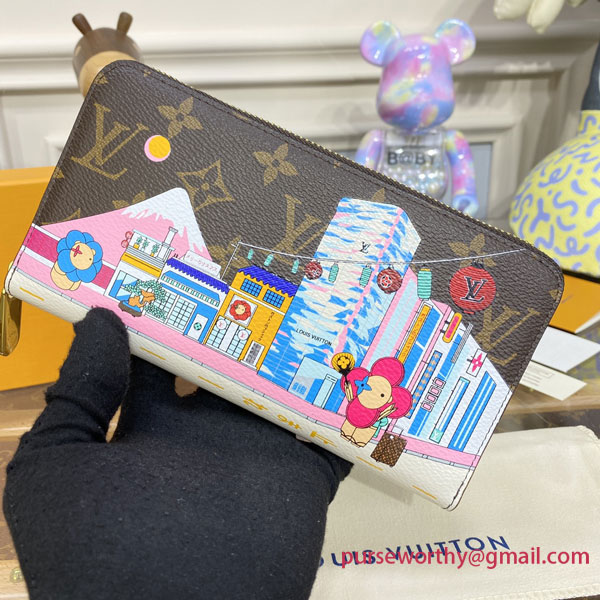 This exclusive edition of the Zippy all-in-one wallet in Monogram canvas belongs to the Vivienne Holidays 2022 collectsion. A detailed print shows Louis Vuitton's Vivienne mascot in front of the House's futuristic Tokyo boutique, with the iconic Mount Fuji in the background. An invitation to travel, this colorful, collectsible edition makes an ideal gift.