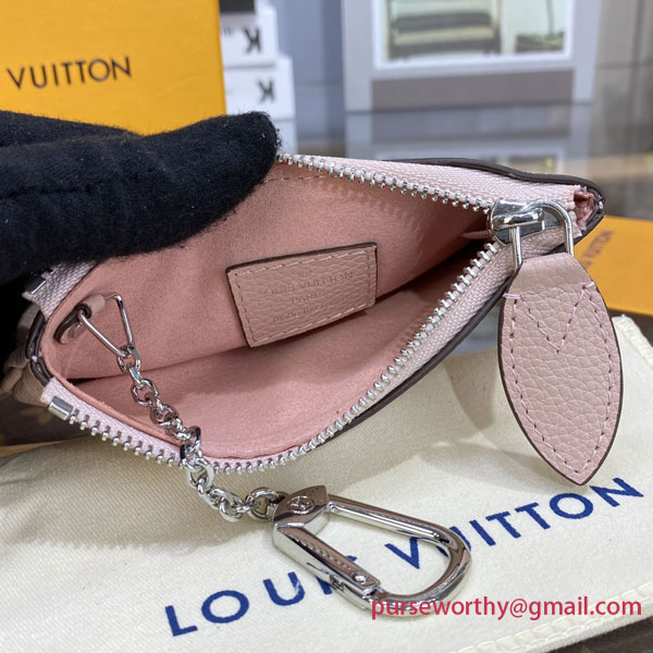 This elegant Key Pouch is crafted from supple Mahina leather, whose perforations recreate the iconic Monogram pattern. With its secure zip closure, this practical accessory can hold coins and cards as well as keys. It can be hooked onto a bag or belt, or attached to the D-ring inside many Louis Vuitton bags.