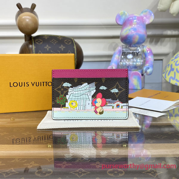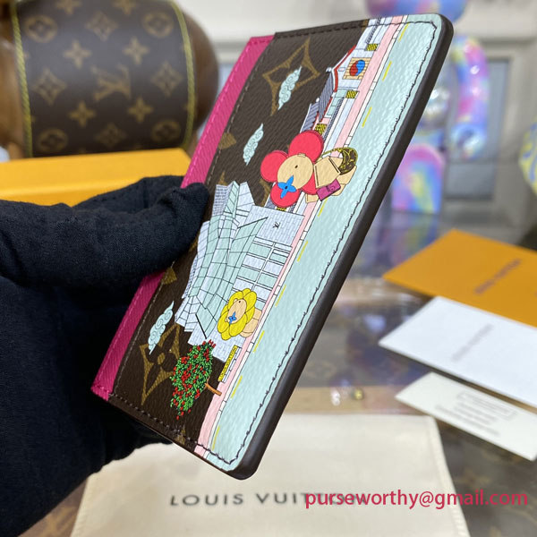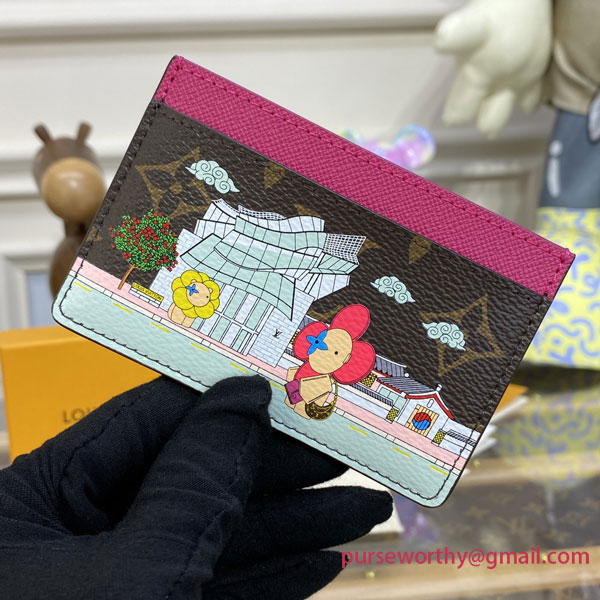 For the Vivienne Holidays 2022 collectsion, the Card Holder in Monogram canvas features an exclusive print paying tribute to South Korea. It shows Louis Vuitton mascot Vivienne in front of the Seoul boutique, alongside a Sakura tree and a temple. An invitation to travel, this practical and collectsible accessory makes a perfect gift.