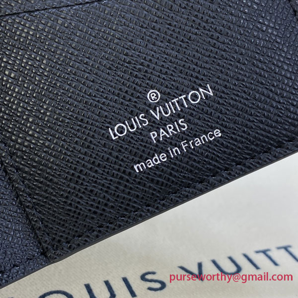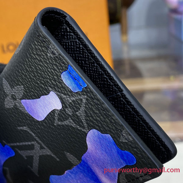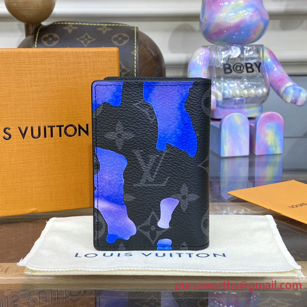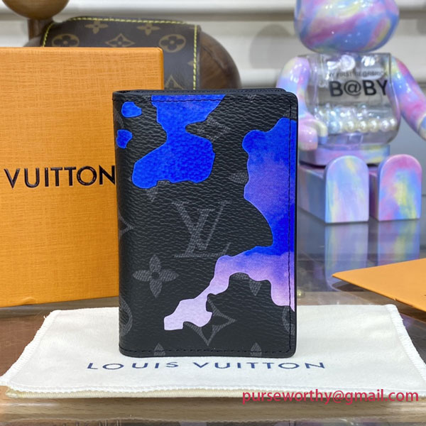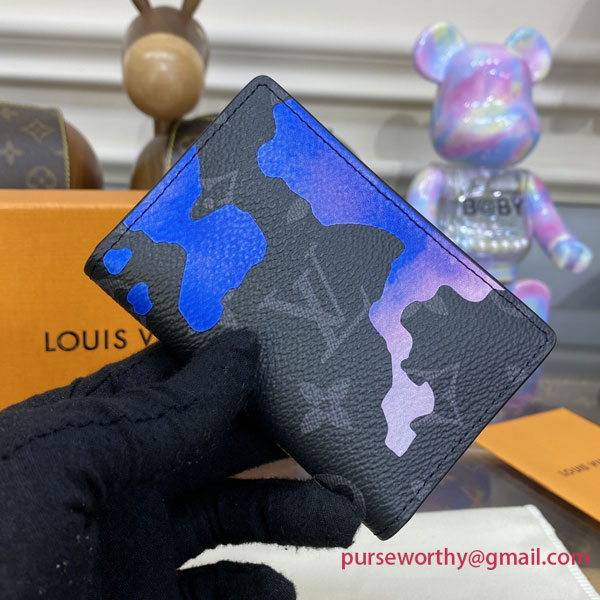 A highly practical, all-purpose wallet, Louis Vuitton’s Pocket Organizer joins the “Room with a View” collectsion for year’s end 2022 with a poetic new decoration on Monogram Eclipse canvas. A dreamlike sunrise in peaceful shades of blue and purple is dotted with clouds that subtly spell out the House’s initials for a clever signature touch.