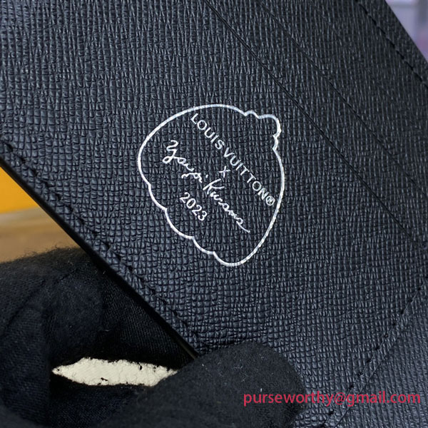 The LVxYK Multiple wallet features an upbeat print on Monogram Eclipse canvas for the new Louis Vuitton x Yayoi Kusama collectsion. A forerunner of the avant-garde since the 1960s, the venerated Japanese artist is known for her emblematic use of dots. This pattern reproduces her hand-painted dots using a sophisticated screen-printing technique with a realistic 3D effect. A practical accessory becomes an artistic expression.