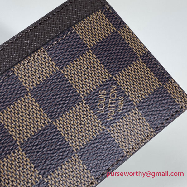 This simple card holder in Damier canvas slips easily into a pocket. It holds credit cards, transport cards or business cards in its three slots.