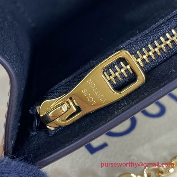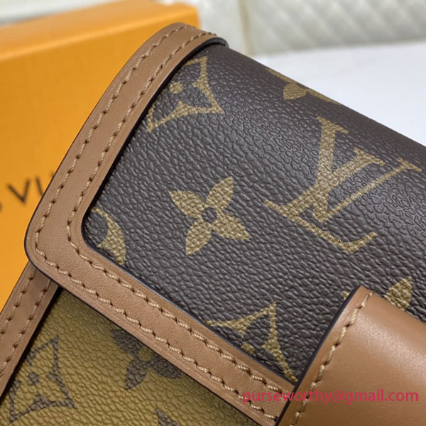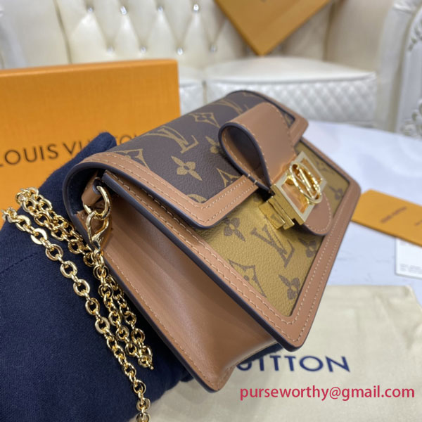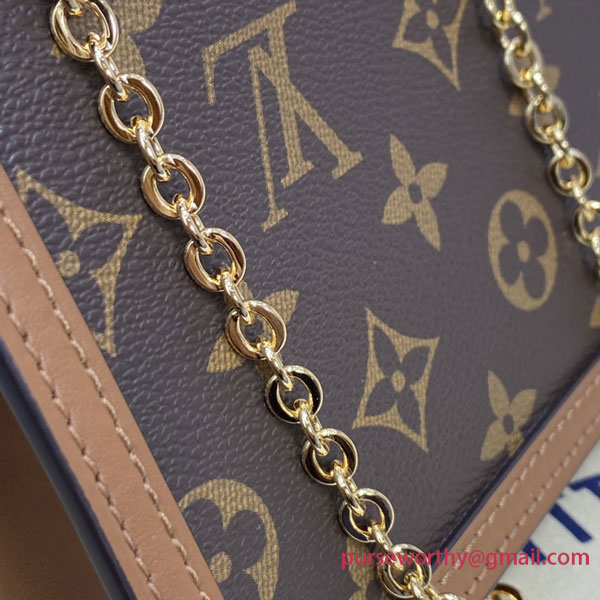 Combining Monogram and Monogram Reverse canvas, the Dauphine Chain Wallet reprises all the signatures of the iconic Dauphine collectsion: the vintage look, the calf-leather trim and the LV Circle clasp. This neat yet spacious wallet features a removable gold-tone chain, enabling it to be carried in several different ways.