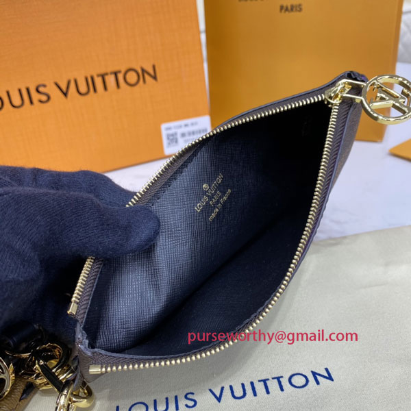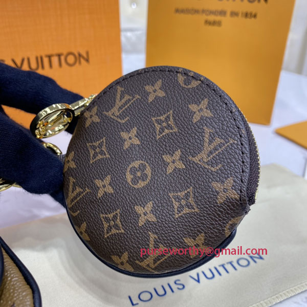 The Trio Pouch is an ingenious design combining three different pouches in three variations of Louis Vuitton's iconic Monogram canvas. Ideal for essentials, the pouches can be used together or separately, and carried in the hand by the wristlet or attached to a bag or belt. They are secured with gold-tone LV Circle zips.