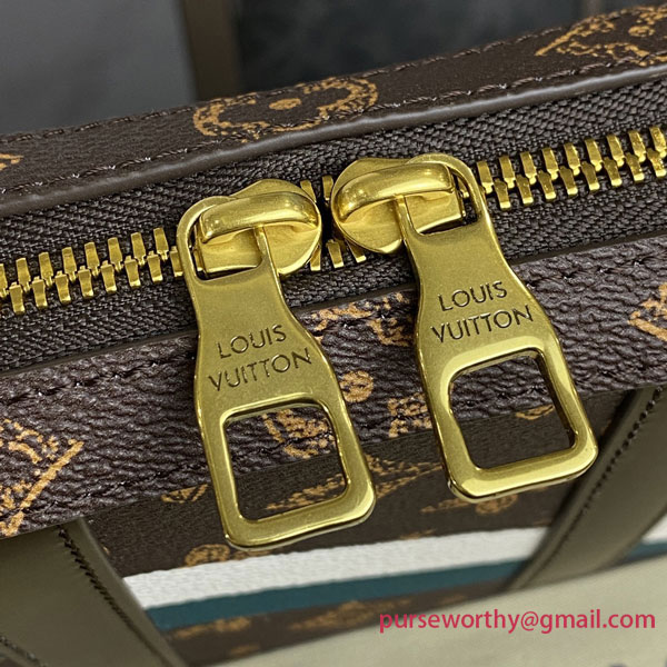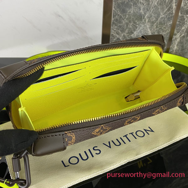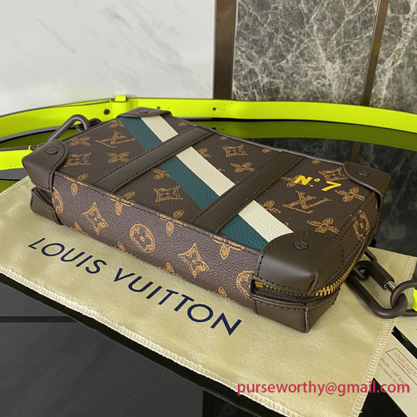 A cross between a wallet and a compact body bag, the Soft Trunk Wallet looks like a tiny Louis Vuitton trunk. Made from Monogram canvas with a vintage feel in the way the Monogram motif is rendered on the canvas, it features a diagonal two-tone stripe and the number 7 printed on the canvas.