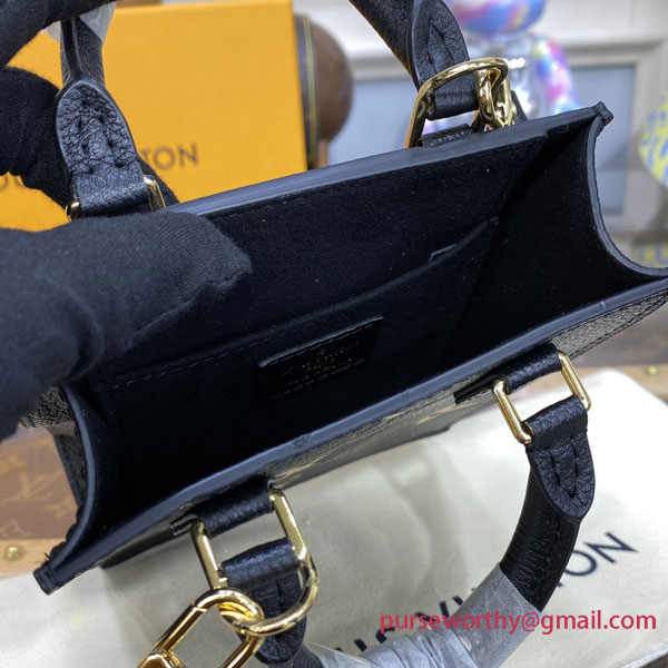 The Petit Sac Plat is crafted from supple, grained Monogram Empreinte leather with the embossed Monogram pattern highlighted by the chic bicolor palette. A miniature replica of Louis Vuitton's emblematic Sac Plat, this bag is lightweight and surprisingly spacious. It can be carried on the shoulder, across the body or in the hand.