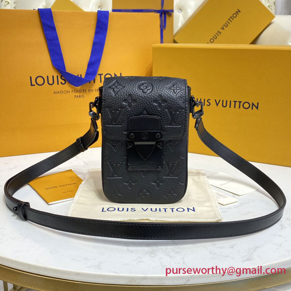 The new S-Lock Vertical wearable wallet now comes in elegant black Taurillon Monogram leather. Top-grade cowhide embossed with Louis Vuitton’s emblematic Monogram pattern is highlighted with heritage touches like the magnetic closure inspired by a historic trunk lock. Compact but large enough for all the daily essentials, it’s the on-trend way to keep personal items close at hand.