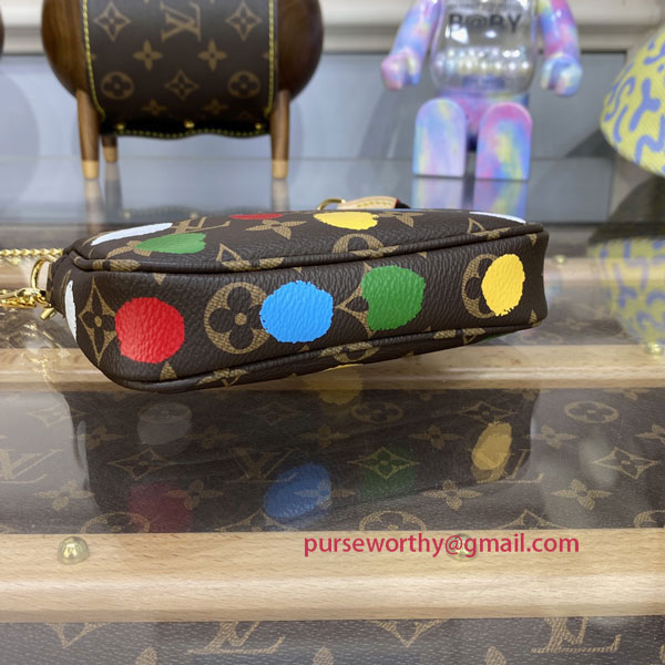 For the second Louis Vuitton x Yayoi Kusama collaboration, the LVxYK Mini Pochette Accessoires comes in Monogram canvas adorned with multicolored dots. The revered Japanese artist has a lifelong fascination with dotted motifs, which she sees as an evocation of her inner tensions. The dots on this elegant clutch are screen-printed using a complex method that produces a 3D hand-painted effect. An upbeat new look for a compact, functional accessory.