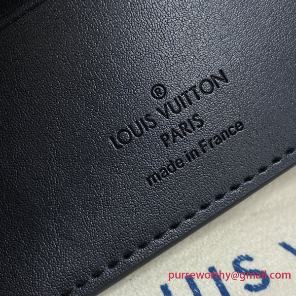 The classic Multiple wallet takes on a new understated elegance with this LV Aerogram version in black calf leather, treated with a special fulling technique to bring out its plush grain. A discreet “LV” in black metal adds a refined signature touch. Handsome and practical, it makes an ideal companion to any of the LV Aerogram bags.