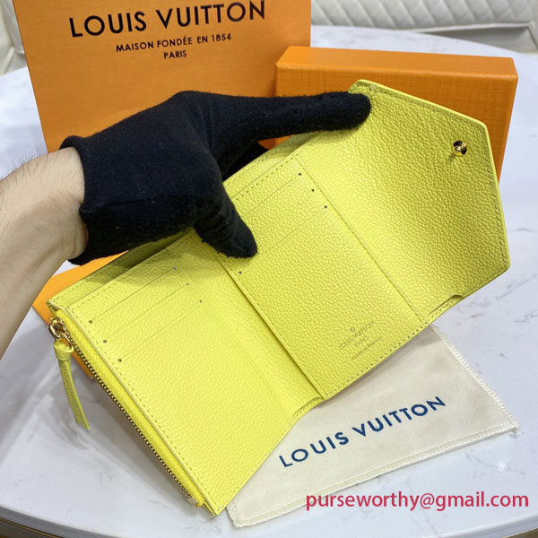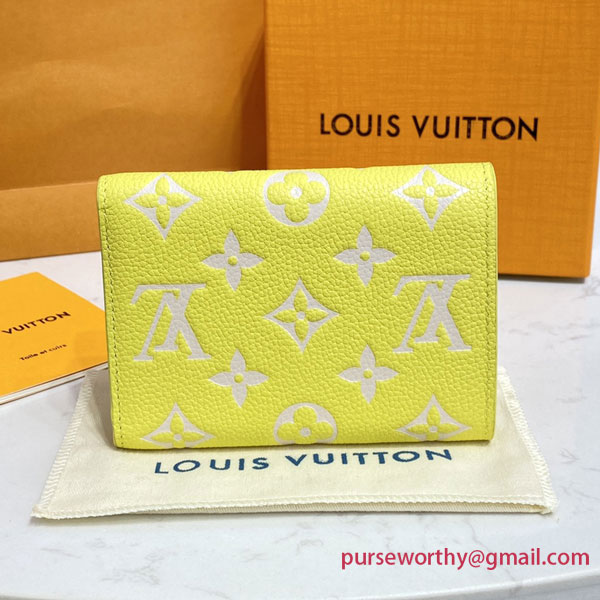 This edition of the Victorine wallet belongs to a special collectsion for Mother's Day. It is crafted from pastel-hued Monogram Empreinte leather embossed with a white Monogram pattern. This tiny wallet, whose flap is sealed with an engraved, gold-tone press-stud, offers a variety of pockets and card slots.