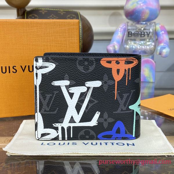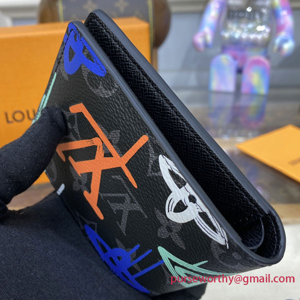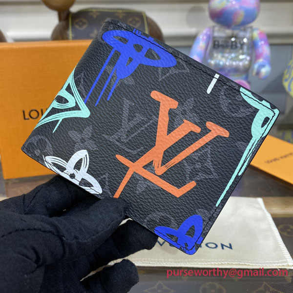 Inspired by the world of street art, this Multiple Wallet in coated canvas features a graffiti version of the classic Monogram pattern, which looks as if it were spray-painted onto the canvas. The inside leather lining includes an array of slots and pockets to keep everything organized and secure.