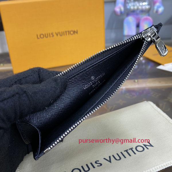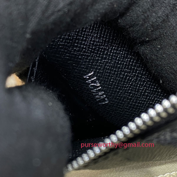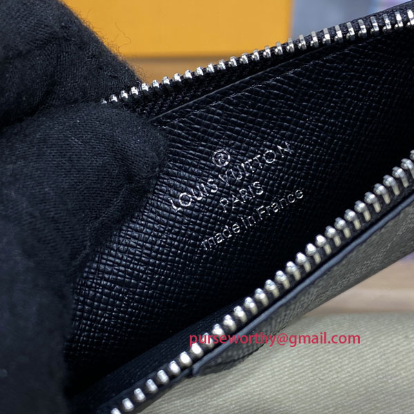 The Coin Card Holder in Damier Graphite canvas is the ideal solution to keep payment essentials in one safe place. Its neat, slim-line design features credit card slots, a zipped coin pocket and a compartment for banknotes.The black leather lining coordinates stylishly with the black and gray canvas.