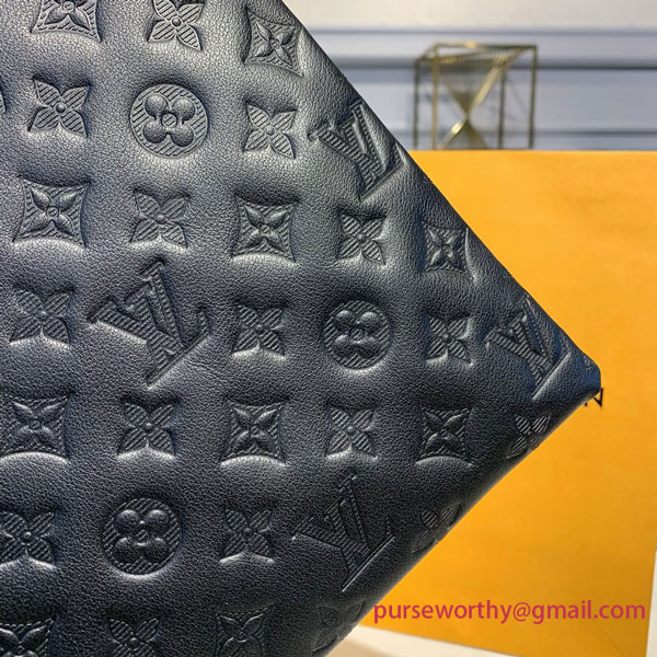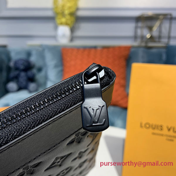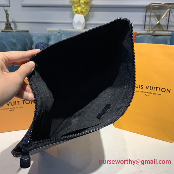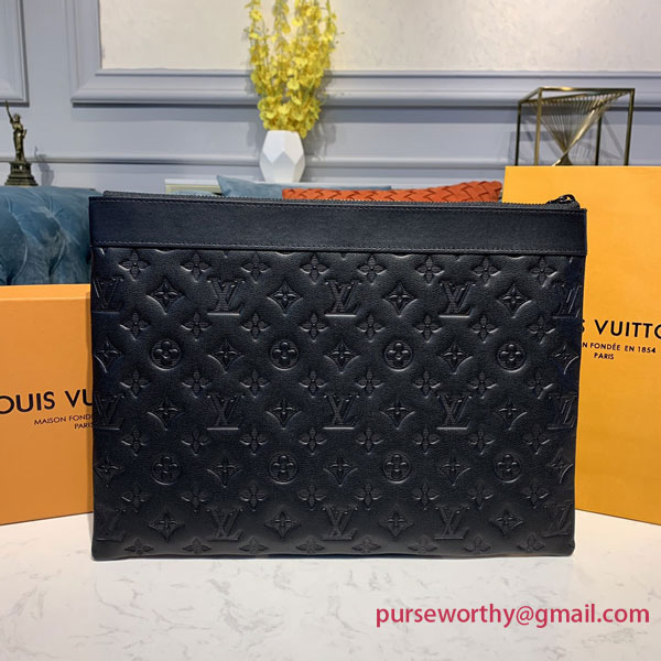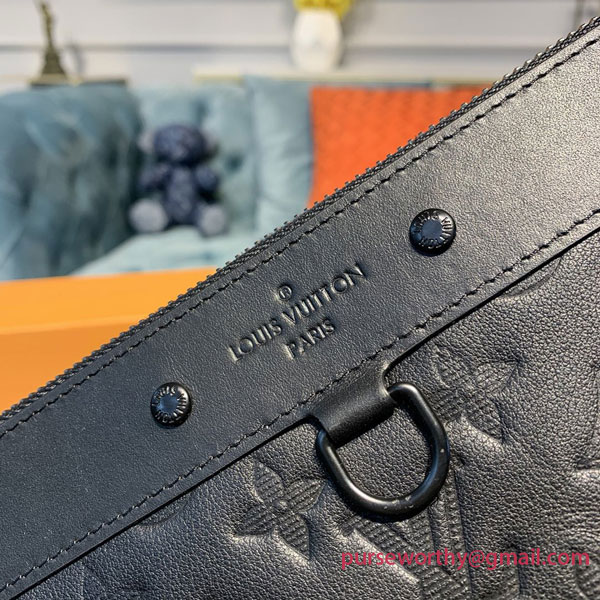 Crafted from black Monogram Shadow calfskin, an exceptionally supple leather discreetly embossed with Louis Vuitton's iconic Monogram pattern, the Discovery Pochette is an elegant way to carry documents and other essentials. This sleek pouch with its signature D-ring can be carried on its own or slipped inside another bag.