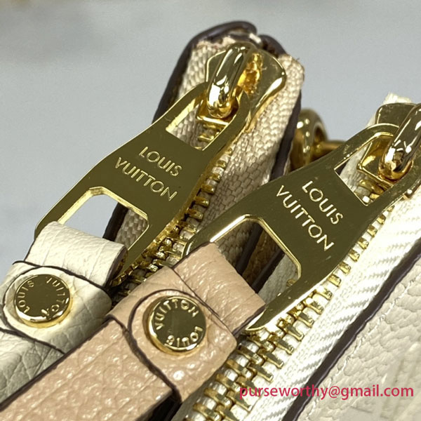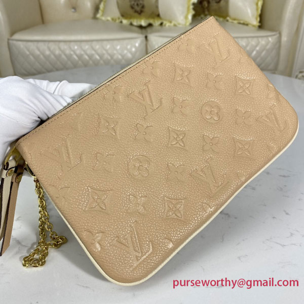 The Pochette Double Zip in two-tone Monogram Empreinte leather is a versatile pouch designed for busy lifestyles. Its two zipped pockets hold valuables, including smartphones, while its middle space allows direct access to essentials. The supple, embossed leather makes it pleasant to carry either on the shoulder or in the hand.