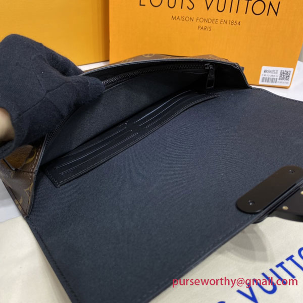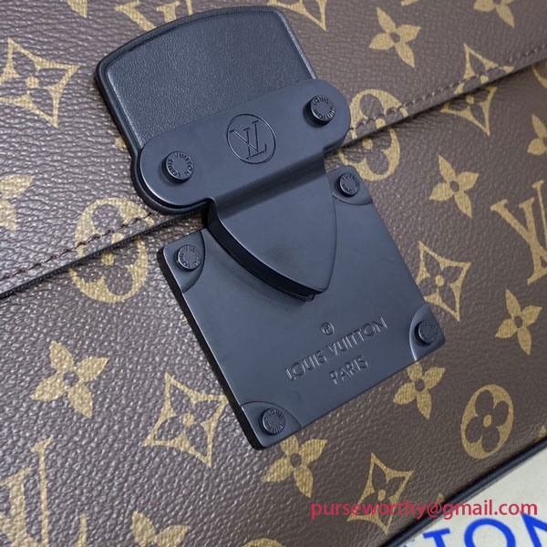 This version of the A4 Pouch in Monogram Macassar canvas features an innovative new closure: the S Lock, inspired by a trunk clasp invented by Georges Vuitton in 1886. With its large main compartment plus six card slots and a removable wristlet for easy hand carry, it’s the elegant, contemporary way to carry documents and everyday essentials.