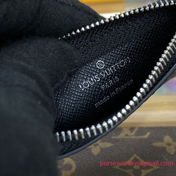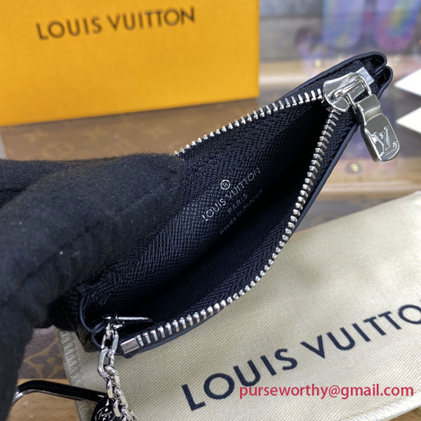 The Key Pouch is a playful yet practical accessory that can carry coins, cards, folded bills and other small items, in addition to keys. Secured with an LV-engraved zip, it can be hooked onto the D-ring inside most Louis Vuitton bags, or used as a bag or belt charm.
